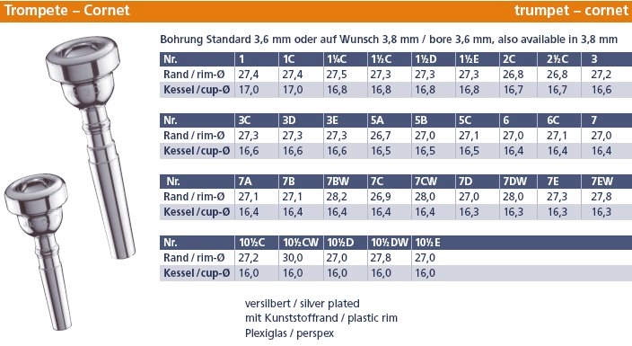 Mundstück Josef Klier für Trompete 1 1/2E - USA Serie