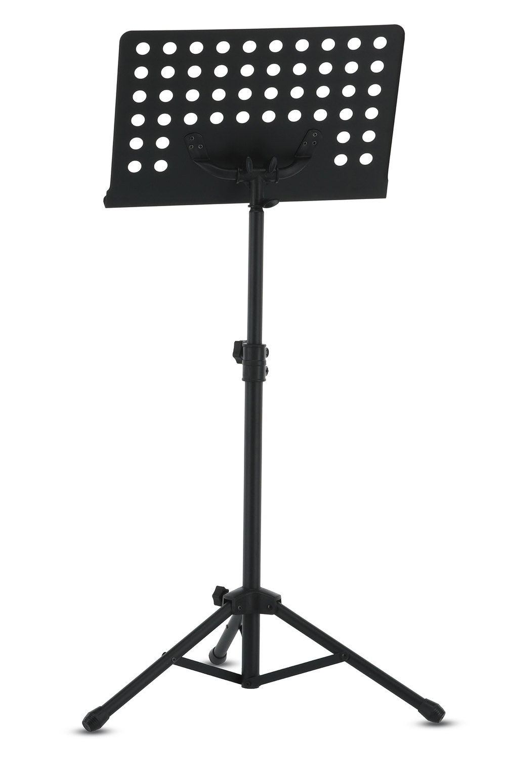 Sehr stabiles Orchesternotenpult für den Proberaum oder die Bühne. Die grosse Lochblech Auflage mit verstellbarem Winkel eignet sich auch für schwerere Notenmappen. Die stabile Fusskonstruktion sorgt für einen sicheren Stand... und das ganze zu einem günstigen Preis..